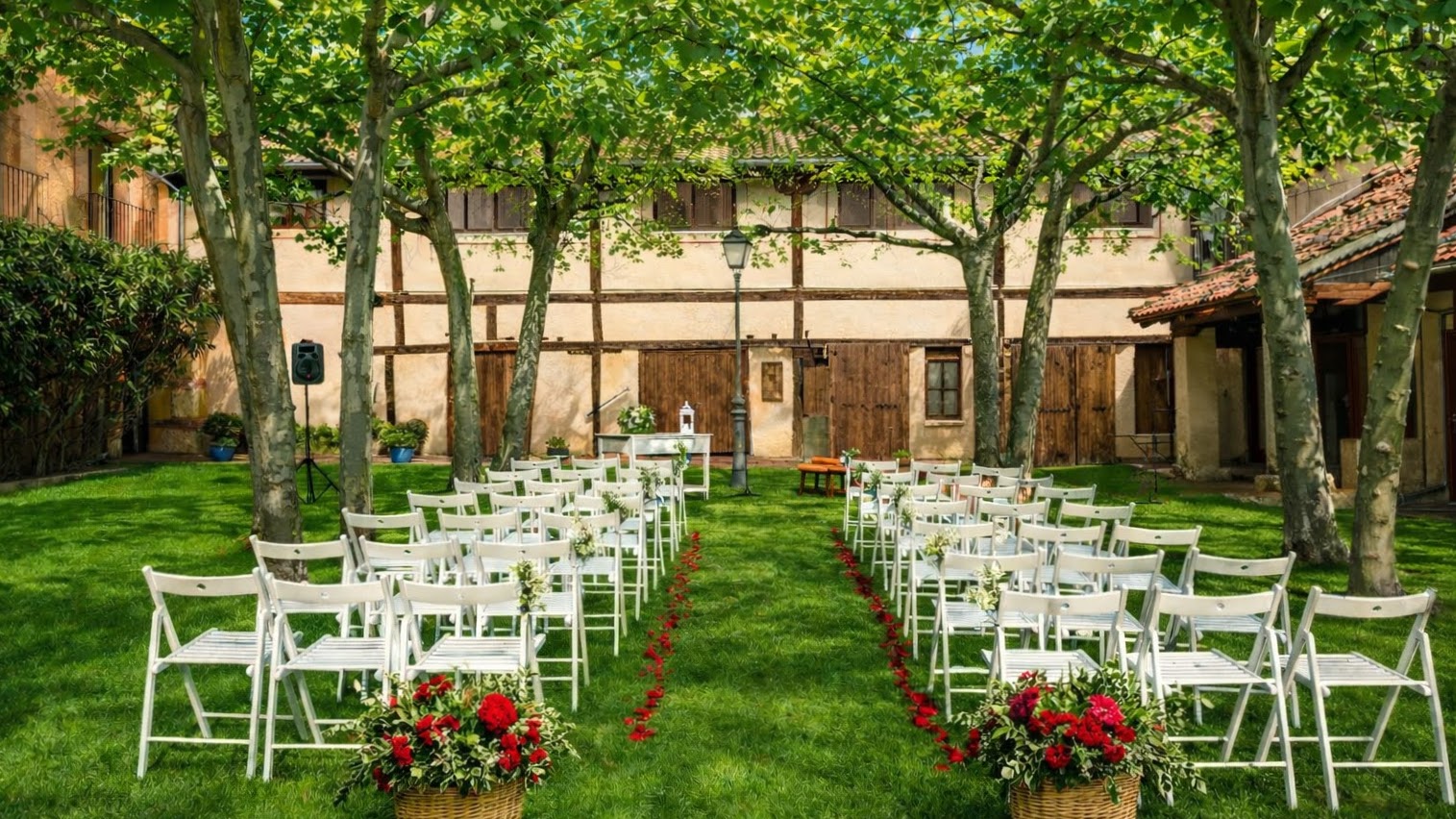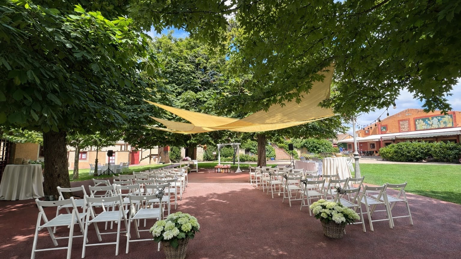 En la finca tenemos zonas ajardinadas donde es posible celebrar ceremonias civiles al aire libre, siempre que el tiempo lo permita. Además, contamos con dos hoteles dentro del mismo complejo, lo que facilita el alojamiento de los invitados y permite disfrutar de la celebración sin preocuparse por los desplazamientos.